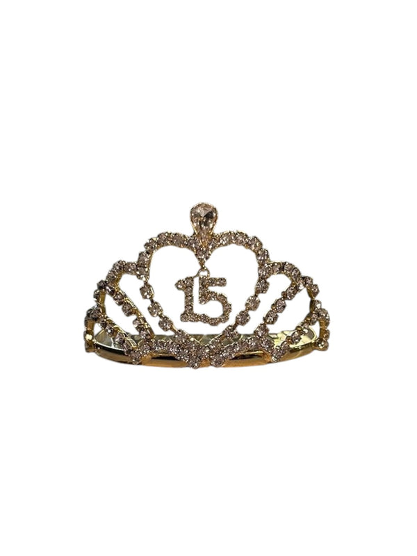 1.57 H Tiara W-Heart 15th Birthday Gifts for girls,15th Birthday Tiara/Crown Gold,15th Birthday Decorations Party Supplies set of 3