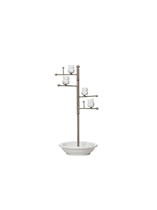 Charming White Ceramic Owl Knickknack Stand Jewelry Chain Ring Holder Unique Decorative Accent for Elegance and Organization 15 High
