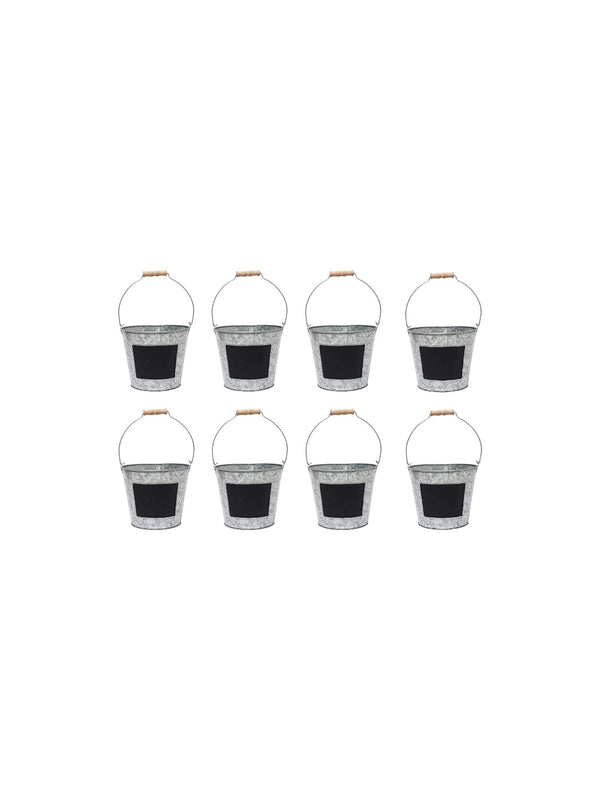 7 Inch Diameter Set of 8 Metal Pail with Chalkboard. Ideal Gift for Wedding House Warming Floral Planter DIY Craft Home Office Party Garden Patio P1